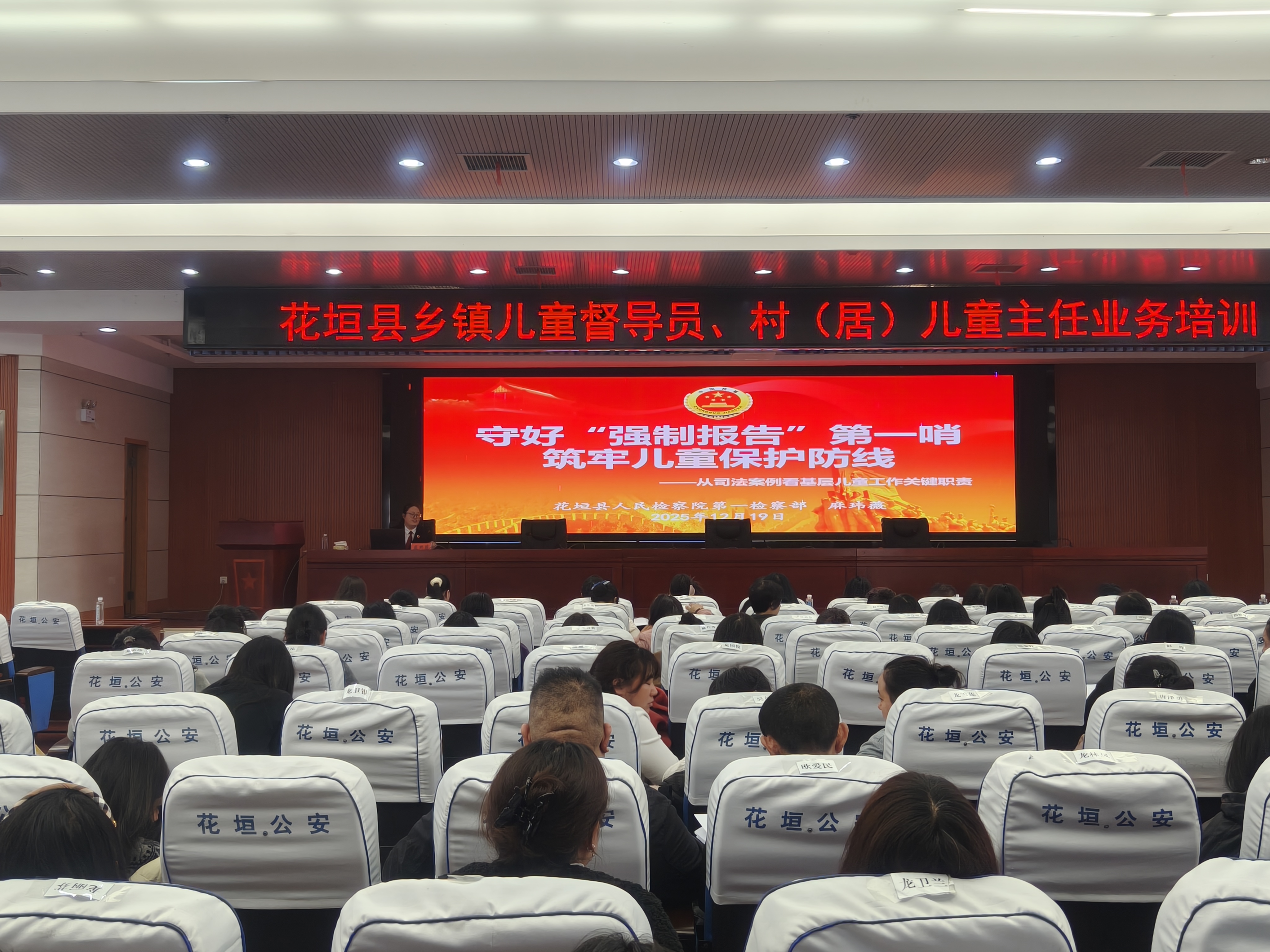 为切实推动未成年人强制报告制度在基层落地生根,2025年12月19日上午,花垣县人民检察院在花垣县公安局会议室,面向全县12个乡镇儿童督导员、144个村(居)儿童主任,举办了一场聚焦实务的未成年人强制报告制度专题宣讲会。