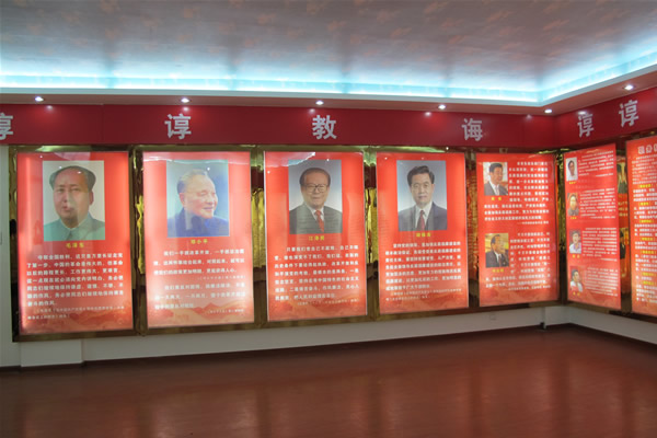 警示教育基地预防厅按顺时针方向设置了“谆谆教诲”、“史海星光”、“流芳千古”三篇,并设立图片展。