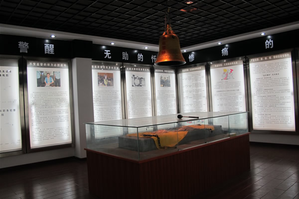 警示教育基地惩治厅整体采取灰暗色彩,上面的方格形成一张大网,意示“天网恢恢、疏而不漏”,大厅按照逆时针顺序设置了“惨痛的教训”、“无助的忏悔”、“真实的警醒”三篇,并在厅中设置了“展示柜”。