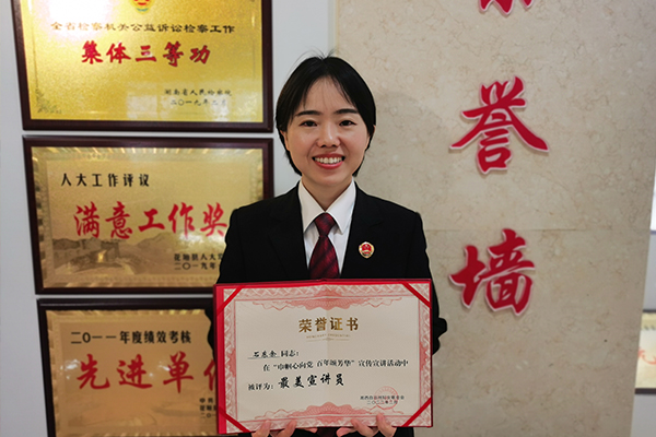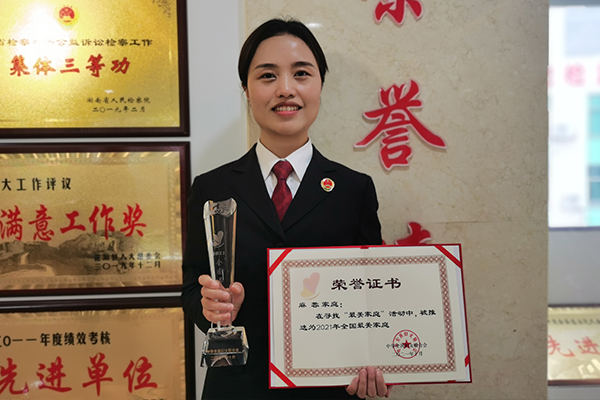 会议表彰了2021年度先进集体及先进个人,我院员额检察官麻蓉家庭被评为“2021年全国最美家庭”,院党组成员、政治部主任石东余在“巾帼心向党 百年颂芳华”宣传宣讲活动中被评为“最美宣讲员”,第一检察部主任张婷被评为全县“三八红旗手”,办公室干警彭静被评为全县“2021年度先进妇女工作者”。